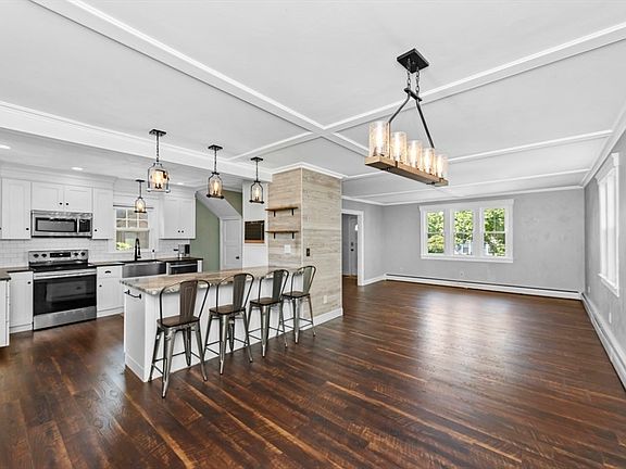 Dutch Colonial in Gardner Park area of Peabody! This 3 bedroom 2 bath home will not disappoint. Open concept kitchen renovated (2018) with white Shaker cabinets, granite counters, farmer's sink, stainless steel appliances and a large island w/storage and seating for 4. Home office with built in bookcases & 2 exposures. Second floor has 3 bedrooms, 1 full updated bath, hardwood floors and a walk-up attic, perfect for storage or potential future expansion. Full basement partially finished with family room and full bath. Buderus boiler with indirect water heater (2018), asphalt shingle roof (2013.), newer vinyl replacement windows. Enjoy your time in the fenced-in back yard, grilling on the deck or around the fire pit area. The storage shed provides ample space for your outdoor equipment. Great location for commuting, close to the highway, commuter rail stop, restaurants.