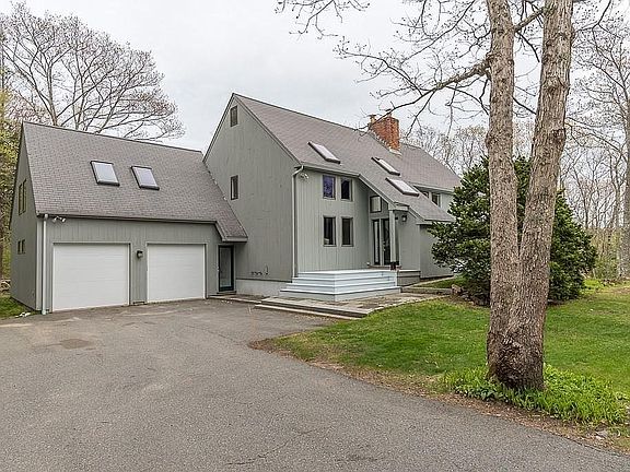 Privacy abounds up the long winding driveway to this 5 acre wooded hill top. This south facing sun-filled contemporary has an updated gourmet kitchen and open floor plan. With a focal point of the large brick fireplace and a lot of natural light, the open dining and living area has ample exterior access to the wrap around deck which makes this house perfect for entertaining or embracing the outside! Cozy den off the kitchen could be a perfect TV room or library/office. 3 bedrooms and 2 bathrooms complete the second floor; all have cathedral ceilings and skylights to keep it light and airy. The 2 car garage addition offers a 2nd floor bonus room for a skylight office or large playroom. Bright gallery hallway for artwork. The large mudroom hosts a half bath, the laundry closet and provides access to the back yard and outdoor shower. Surrounded by nature and conservation trails, yet close to beach, town and commuting access, this piece of paradise presents a manageable and versatile home!