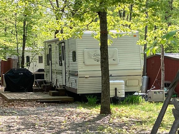Sherwood Forest Minnesota's best kept secret. This property includes, 2002 33' sandpiper travel trailer set back in the woods, shed with extended area so you can park your golf cart, roof of trailer recently sealed, property has privacy, hurry on this one.