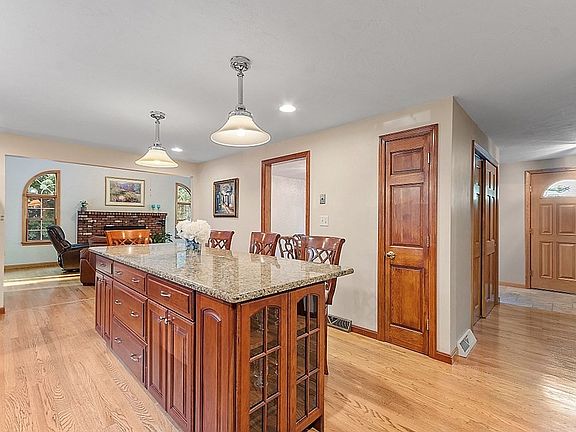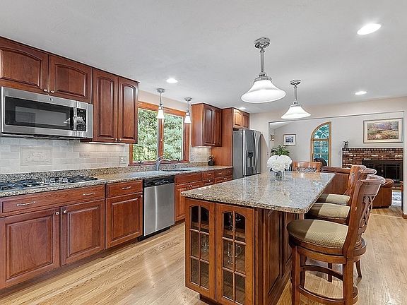 Come see this immaculate & welcoming home w/ extensive updates, nicely tucked away on a quiet "loop" street. Stunning updated 21' kitchen with a huge center island! It feartures cherry cabinets, granite counter tops, a double wall oven & a gas cook-top. Truly a dream kitchen that lends itself equally to both casual day-to day living or hosting a larger gathering. It is open to the adjacent 24' family room w/ a soaring cathedral ceiling, full wall fireplace & slider leading out to the deck. This combined open space is the heart of this home with a wonderful flow that creates a very spacious feeling. Also on the main floor is a huge laundry room / half bath, large dining room and a separate living room. Upstairs there is a master with hardwood floor, updated bath. The lower level features a large media room & mudroom as you enter from the garage. Wooded privacy, meticulous landscaping, a large shed, and lawn spinkler system make the outside equally attractive and enjoyable. A must see!