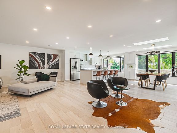 This stunning 4-level side-split offers the perfect blend of space, style, and location. Boasting 4 bedrooms and 2 full bathrooms, this modern contemporary home is nestled in the heart of the sought-after Highland Park neighbourhood just a short walk to top-rated schools, scenic waterfall trails, the rail trail, and only 15 minutes on foot to historic downtown Dundas. Step inside to a bright, open-concept main floor featuring a dramatic wall of oversized windows that flood the space with natural light and offer breathtaking views of the backyard oasis. The chefs kitchen is a true showstopper with an oversized island, sleek cabinetry, and high-end finishes perfect for entertaining or enjoying a quiet family dinner. Unwind in the spacious living room, anchored by a sleek modern gas fireplace and gorgeous hardwood floors that continue throughout the home. Outside, your private retreat awaits a 36x18 ft inground pool, large pergola, and a fully fenced backyard create the ultimate summer escape. Additional features include a large 6-car driveway, offering ample parking for family and guests. Whether you're hosting friends or enjoying peaceful evenings at home, this property offers the lifestyle youve been waiting for in one of Dundass most desirable pockets. Dont miss your chance to call Highland Park home.