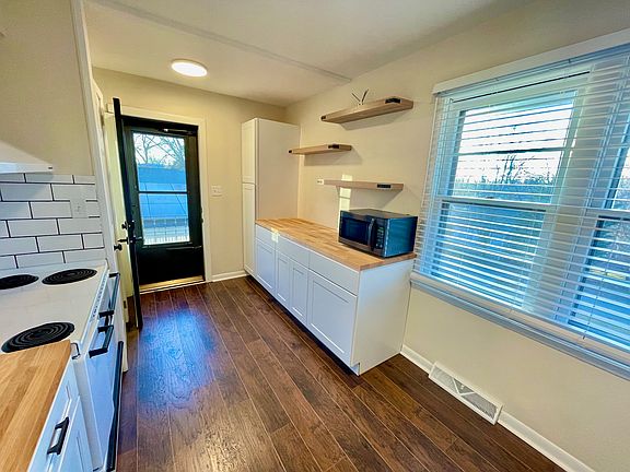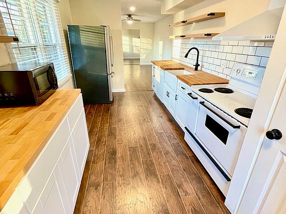 Fully renovated homeAdjacent dining areaExpansive spaceOversized farmhouse sinkOpen shelvingAmple off street parkingCabinet pantry
