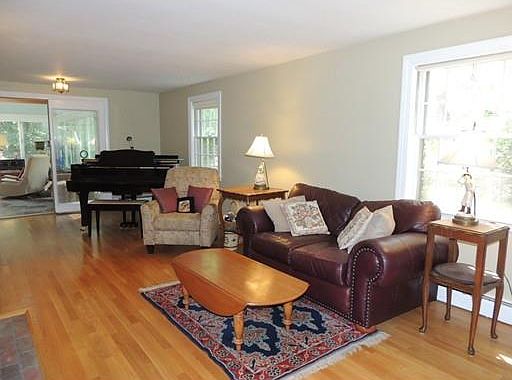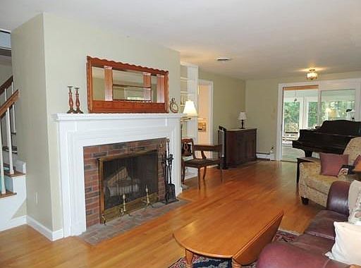 Custom built cape with lots of charm. Lare sunny living room with open floor plan, bow window, bookcases and fireplace. You will love the glassed sunroom with cathedral ceilings, slate floor overlooking private landscaped grounds. Laundry is located on the first floor. Central air on the first floor. Great playroom in basement. Updated furnace and electric board.