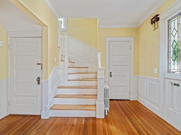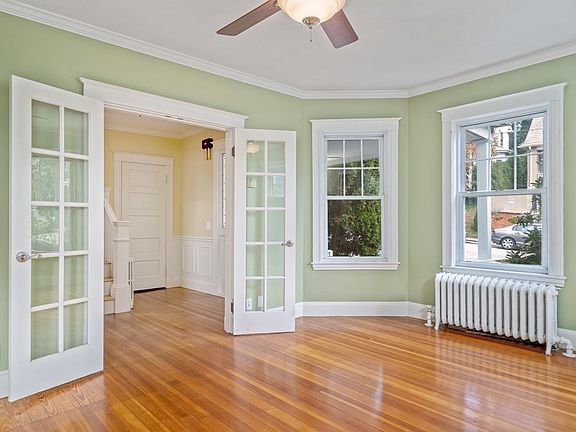 Beautiful four-bedroom Colonial on large 6,100 square foot lot. Home offers formal dining room with built-in hutch, living room with French doors to foyer, eat-in kitchen, separate home office, two full tiled baths, laundry on main level, full walk-up attic, 200-amp electrical service, and hardwood floors throughout. Features covered rocking chair porch and large deck off kitchen overlooking nicely landscaped yard. One-car detached garage. Close to Highland Commuter Rail station, Roche Bros, and neighborhood shops and restaurants. Great location with high walk score of 88.