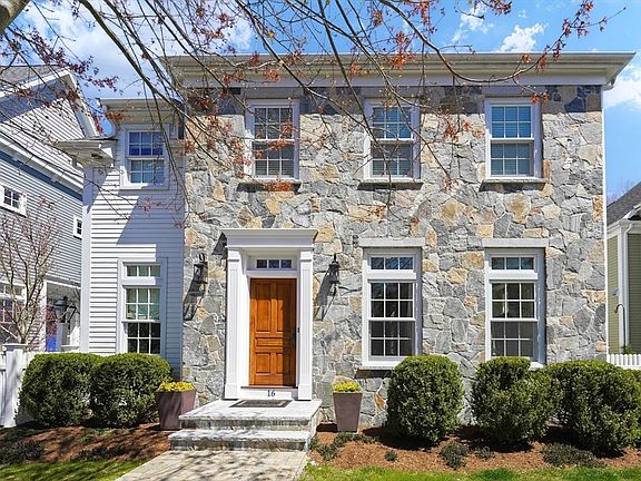 16 Maple sets the standard of bespoke design, master craftsmanship and maintenance-free, luxury living in the heart of Medfield! Overlooking the tree-lined green in award-winning Olde Village Square, this elegant Beacon Hill style detached residence reimagines a historic townhouse for today's lifestyle. Step into elegance through the foyer into a light-filled, lofted open space featuring Brazilian cherry floors, gorgeous millwork, beautiful windows and triple French doors to a gas-lit bluestone patio and fenced courtyard. The designer kitchen is equipped to entertain overlooking a luxe dining room and well-appointed living room. The library offers private office space; the loft is a 2nd option. A gas fireplace, 2 walk-in closets and spa-like bath with steam shower enhance the luxurious primary suite. Two additional bedrooms, a marble bath and laundry complete this level. Downstairs the family room features a media wall, wine closet, bar, and guest room with full bath. Love life at OVS!