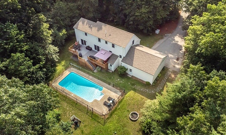 Built for convenience and privacy, this So. Hudson Custom Tri-Level Dormered Cape is situated back from the end of the cul-de-sac on 1.5 acres surrounded by greenery, yet affords easy access to either Routes 93 or 3 for commuters and is mere minutes to restaurants, shopping, and parks.The first floor is designed with an easy open flow between the eat-in kitchen, with granite counters, ample cabinets and SS appliances, a dining area, and a living room, and is perfect for entertaining. A first-floor office or bedroom, HW floors, a full bath, and 2 sliders that lead out to the composite deck along the length of the house overlooking the private yard and built-in pool complete the first level. The second level has the Primary Bedroom with an adjoining tile bathroom featuring a dble vanity, a whirlpool tub, a separate shower, a double closet, plus a bonus generous-sized walk-in closet; plus two additional Bedrooms, and a third full Bathroom. Lower level has Rec./theatre room, & exercise rm.
