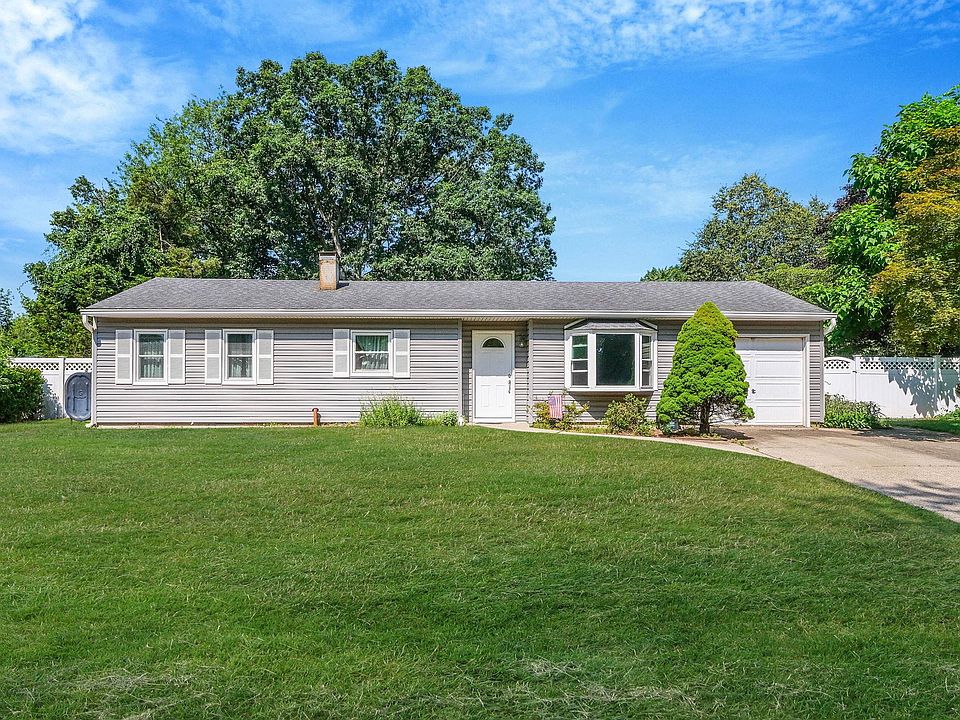 Welcome to 16 Marlin Rd in Centereach. This 4 bed / 1 bath ranch is located on a quiet street with close proximity to LIE. The kitchen with granite countertops and newer stainless-steel appliances is open to the dining space and den. The backyard offers an in-ground pool with newer liner surrounded by a large deck, shed and plenty of green space. The all windows, gutters, front door, backyard fence and washer were replaced in 2023. Don't miss out on this home.
