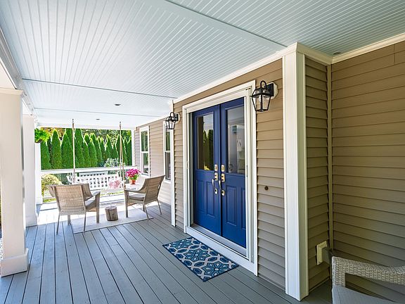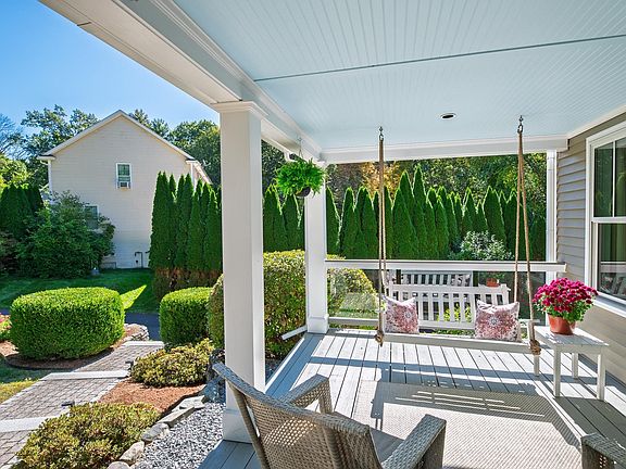 Farmhouse Modern Colonial in Coveted Stratham Neighborhood! Privately set back on a cul-de-sac and abutting 10 acres of conservation land, this beautifully updated 3–4 bedroom, 2.5-bath farmhouse modern home offers style, space, and privacy. A newly paved driveway lined with pear trees welcomes you. Inside, enjoy a quartz kitchen with cork flooring, updated appliances, a custom pantry, and coffee bar. A large dining area offers flexibility as a playroom or office, while the secondary dining space flows into a sunny living room with French doors and built-ins. Step into the screened-in porch or relax on the farmer’s porch overlooking park-like views. Upstairs, the vaulted-ceiling primary suite features an updated tiled shower and walk-in closet with Elfa shelving. Two additional bedrooms share a full bath, and the finished third floor offers space for a media room, guest area, or office. Mudroom, newer windows, and move-in ready appeal complete this exceptional Stratham property. Showings begin this Friday 10/3!