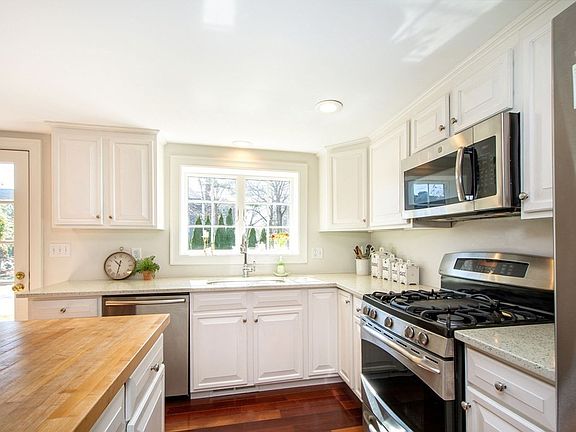 SUNDAY O/H CANCELED!! IMPRESSIVE inside and out!! Not your ordinary ranch incorporating modern amenities and older charm. Light and bright describes the kitchen accented by a butcher block island, stone countertops, white cabinetry with stainless appliances, exposed beams and a generous sized eating area. Glass pocket doors open to the living room with Brazilian cherry floors and an adjoining study accented by a hand painted mural. A private office/nursery, half bath and master bedroom with wood flooring, double closets and a newly updated private bath round off the first floor. Retreat down the custom open staircase to a spacious family room with tile flooring and recessed lighting. Two additional bedrooms with bamboo flooring and a full bath complete the lower level. Step outside and admire the brick walk ways, bluestone patios, no maintenance decking, outdoor shower and shed with elec.Newer systems as well. Additional land outside of the fenced yard offers opportunities!