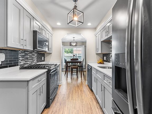 Come check out this updated townhouse In Greenbrook Condominiums! This unit has been lovingly maintained and ready for its new owners! On the first floor find your renovated galley kitchen, updated half bath, dining and large living room with luxury vinyl plank flooring throughout! Attached insulated garage off kitchen makes life easy and winter bearable! Enjoy your summer days on the adorable patio with built-in seating and storage. The second floor has your updated full bath, 2 large bedrooms, and a versatile third room for office or guest room with laundry! Primary has a large walk in closet! Comfort all year long with CENTRAL AIR throughout and your heat INCLUDED in your HOA!! Condo fee includes gas heat, gas cooking, trash removal, landscaping, snow plowing, a clubhouse, tennis court, playground, and swimming pool. Conveniently located near shopping, dining, major routes with option to walk or bike to three train stops! Pets welcome! Showings start Thursday!