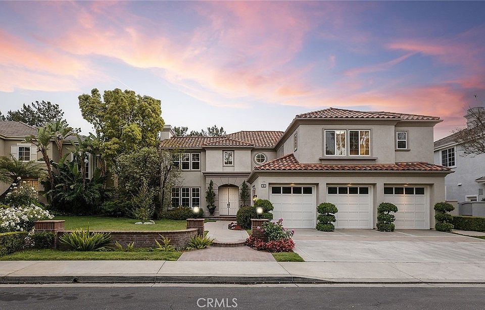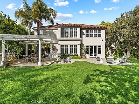 Your showstopper dream home is now available in the prestigious guard-gated community of Turtle Rock Summit! Not only does this custom estate boast an exceptional floor plan and privacy, but it’s been fully transformed with modern luxury and sophisticated design capturing Southern California living at its finest. Blending a mix of traditional timeless elements balanced with chic clean lines, you’ll enjoy a warm and inviting home which is perfect for entertaining. Extensive use of classic marble finishes, quartzite, white oak luxury vinyl flooring, champagne brass plumbing fixtures, brushed gold contemporary light fixtures and soft white and gray custom interior paint create unexpected contrast and elevate every room. Plenty of natural light floods the interiors and views of relaxing trees and greens can be enjoyed from most every room. Situated on a pool-sized lot and a rare single-loaded street, this secluded oasis boasts a sprawling backyard where you can bask in the sunshine or grill and chill with family and friends. Enter the formal living and dining room, where sophistication unfolds. The center-set living room fireplace exudes beauty and warmth and French doors seamlessly connect the dining room to the rear entertaining patio. A central kitchen, with breakfast nook and counter seating, is a culinary enthusiast's dream and features luxury quartzite counters, waterfall center island paired with mixed wood-tone cabinetry, brushed brass pulls and fixtures, and Bertazzoni stainless steel appliances. The family room showcases a stunning porcelain tile surround fireplace. An ideal downstairs guest ensuite, dramatic powder room and separate laundry room with LG front loading washer and dryer complete the first level. Upstairs offers a luxurious primary suite with a bathroom that will knock your socks off. It unveils a beautiful mix of marble finishes with warm wood cabinetry and chic accent lighting along with dual raised vanities, freestanding soaking tub and a separate walk-in shower. The upstairs secondary bedrooms share two compartmented bathrooms and have vanities with dual sinks. Discover additional desirable rooms including a separate home office with hand-crafted built-in desk, cabinets and bookshelves plus an oversized bonus/media room with everything you need: soaring ceilings, built-in bench seat and desk, entertainment center with curved, Samsung flat screen TV and lots of storage. Award winning schools. No Mello Roos. It's a dream come true.