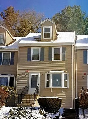 Showings start at the open house, Saturday February 3rd from 12:00 - 2:00. Beautiful townhouse meticulously maintained and completely updated boasts 3 bedrooms and 1.5 baths. The entire first floor has a wide open floor plan that is amazing. The sunny kitchen has granite counters and breakfast bar, tile back splash, stainless steel appliances and custom cabinets. There is a dining area with sliders that go to a privacy deck in back. The slider at one end and living room bay/bow window at the other let in a lot of light to make it bright and cheery. All 3 bedrooms are bright and good sized. The basement has a large finished area that is currently being used as a family room and office. This condo has lots of space and storage. The kitchen was redone in 2012, the heat pump in 2013, the roof in 2012, the air conditioning compressor outside in 2016. Solid 6 panel doors. New windows. There is a sprinkler system in each unit of the complex.