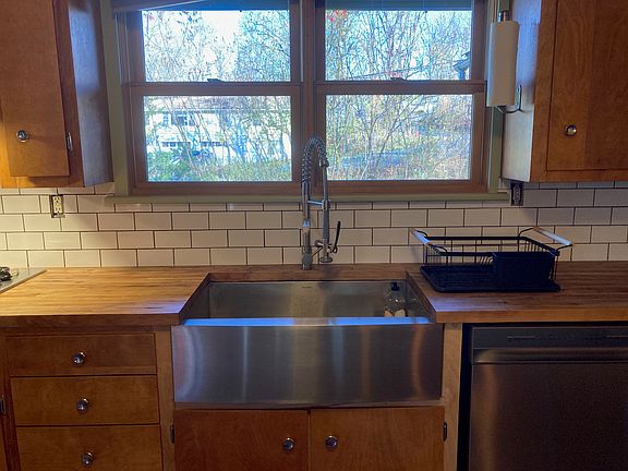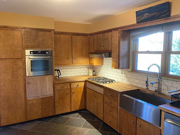 Recently renovated, the home is equipped with radiant heat flooring, a mix of natural stone and hardwood flooring, and new windows and doors. The kitchen features a large stainless steel farm sink, dishwasher, refrigerator, wall oven and range. Two large bedrooms (one has its own bathroom), two full baths (one has a large concrete soaking tub with radiant heat tubing in the concrete), and a washer and dryer with a slop sink in the full unfinished basement. The updated insulation and high efficiency propane boiler with radiant heat flooring ensures a warm and cozy home with low heating costs.