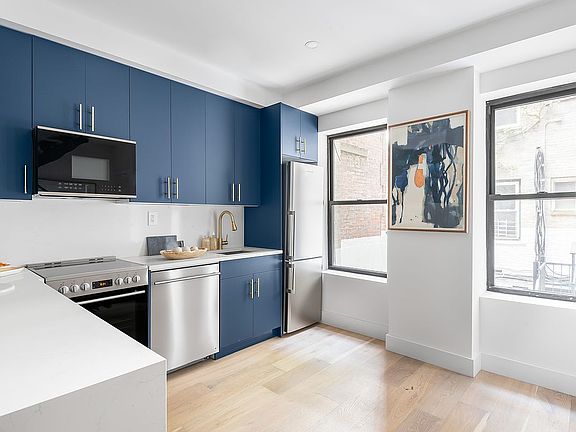The kitchens are a testament to the perfect fusion of aesthetics and functionality. Whether you're an avid home cook or an entertainer at heart, these kitchens will inspire and delight you with their tasteful combination of blue cabinets, open layout, stainless steel appliances, some with breakfast bars, quartz countertops, and ample storage. It's a kitchen where culinary dreams come true.