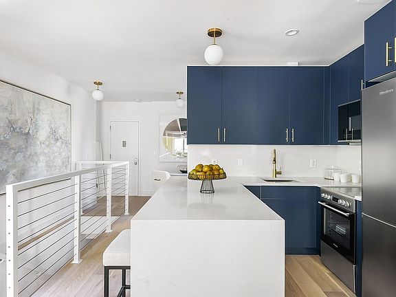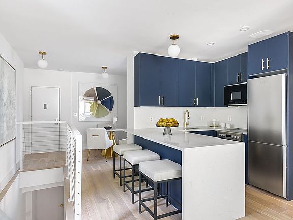 The kitchens are a testament to the perfect fusion of aesthetics and functionality. Whether you're an avid home cook or an entertainer at heart, these kitchens will inspire and delight you with their tasteful combination of blue cabinets, open layout, stainless steel appliances, some with breakfast bars, quartz countertops, and ample storage. It's a kitchen where culinary dreams come true.
