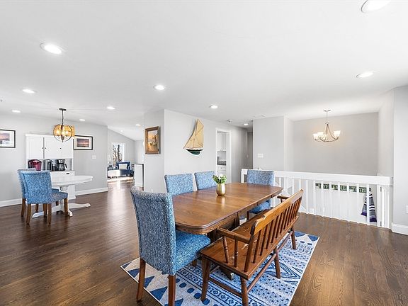Located on a quiet cul-de-sac, this renovated 6 bedroom home with seasonal water views is just a quarter mile from all Scituate Harbor has to offer! Main floor boasts beautiful walnut hardwood, updated kitchen, full bathroom and 3 bedrooms. Kitchen includes SS appliances, white cabinets, granite counter tops and opens up into sunny dining room as well as the living room with surrounding windows, vaulted ceilings, and slider to the deck overlooking the beautiful flat yard space including outdoor shower. The lower level includes the primary bedroom with expansive closet, cozy family room with fireplace and 2 more bedrooms. Also included on this level is a renovated full bathroom, mudroom area with walkout to yard and dedicated laundry space. Additional recent improvements include: Roof, new heating/AC system(s), driveway/walkway, interior/exterior painting, leveled yard, flooring & carpet, all new exterior doors, additional closet space, recessed lighting, deck stairs and new shed