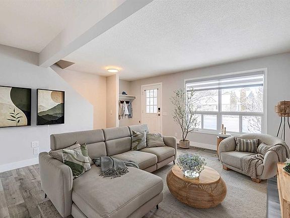 Wonderfully renovated townhome offering a bright and welcoming living space with modern laminate floors, fresh paint, and a beautifully updated kitchen featuring newer white cabinets, quartz counters, and stainless appliances. The upstairs has a renovated bathroom and three large bedrooms, including a huge primary suite with a custom built-in closet. You’ll love the private fenced yard that backs right to a greenspace. The large unfinished basement provides plenty of storage, and the furnace and water heater are approximately six years old. This well-maintained complex has seen major updates over the past decade, including windows, doors, roof, siding, and newer vinyl fencing, and the condo fees include water. There is an assigned parking stall right out from of this home. This townhome is ideally located in Queensland, just a short walk from Fish Creek Park with its endless pathway system and access to the Bow River. Commuting is convenient with quick access to Deerfoot Trail, and families will appreciate having several schools close by. Ready for a quick possession.