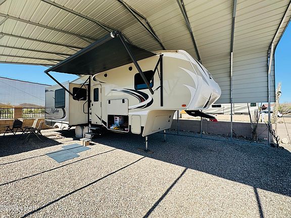 Deeded RV lot located in Arizona Sun Village, 55+, private, secure, gated community. This RV lot is priced to sell and features a 24' x 40' Kool cover, a total of (5) 50amp hookups, 2 full RV Hookups. The 10' x 16' garage/storage/workshop includes 1/2 bath, washer, refrigerator and plenty of storage. **** Water, sewer and garbage included in the $800 annual HOA dues. *2016 Grand Design 5th wheel may be negotiated outside of escrow. Perfect for your RV lifestyle every season or all year around! Don't wait... call today!