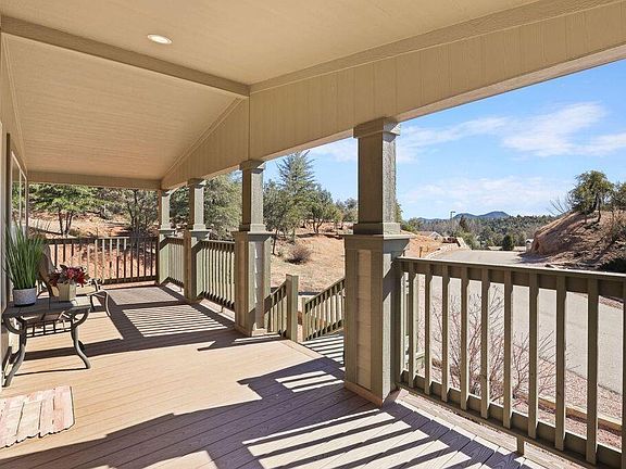 Enjoy stunning mountain views & beautifully colored sunsets from this home in the 55+ community of W Ranch Resort in Star Valley. Perched on a corner lot with only 1 adjoining neighbor to the west, this residence abuts park-owned land on 2 sides which is graced with tall native pine &n oak trees - which means there are no immediate neighbors to the rear of the home or to the east, and never will be. Enter this home from the over 200 sq ft covered front deck & delight in the open spacious great room concept with vaulted ceilings. Total square footage of the structure, including the covered front deck is 1599 sq ft. Ceiling fan in living room plus all bedroom ceiling fixtures are braced for ceiling fans. Bring your toys, there's plenty of space in the driveway. Fenced back yard. Directly south of the driveway is designated parking for the lightly used StarLite Trail. And directly south of the designated parking is more park-owned land graced with native oaks and pines. It is such a pleasant view as it compliments the stunning mountain view of the Granite Dells! Water, Sewer Trash are included in the lot rent which will be $590 and the buyer must be approved by the park. Additional amenities as a resident of the park include Fitness Room, Clubhouse, Dog Park, Pickleball Court, and Community Garden. Please contact listing agent if you have any more questions!