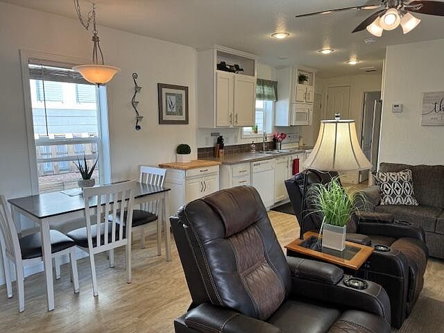 This Beautiful 2020 Clayton home sits on a premium double lot in W Ranch, an upscale 55+ Community, where you can enjoy amazing views while reclining inside the great room or entertaining on the expansive outdoor porch. The 'Amberly' model is a highly desirable 2BR/2BA open floor plan with split bedrooms, great room, & open kitchen. Additional items include an upgraded fridge, stackable W/D, large capacity water heater, storm doors on both exterior doors & ceiling fans in every room including the outdoor porch. The home boasts a large 16x16 outdoor porch (Trex), with adjoining catwalk to the front door. This home is perfect as a mountain retreat or as a full-time residence. Most furniture and furnishings to convey with a full price offer. Space rent is $600/mo which includes water, sewer & trash. The Big W Ranch Resort offers amenities such as: Fitness center, Pickleball court, Dog park, Picnic area, Game room & Clubhouse. This is your opportunity to own a well-cared for home in a desirable 55+ community. Buyer to verify all facts and figures.