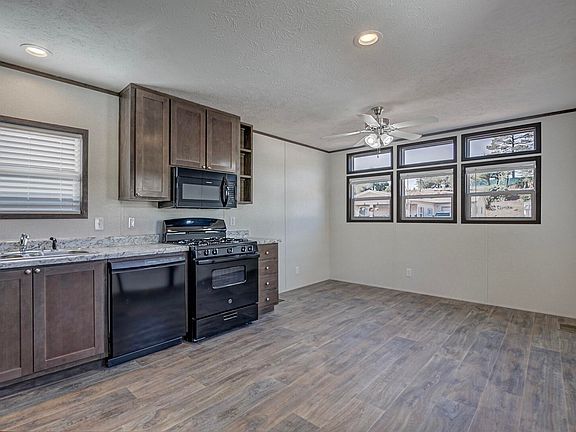Step into a world of contemporary comfort and timeless style in the BRAND NEW 2023 Park Model which offers a perfect retreat for those seeking the ultimate in relaxation. The open floor plan is bright and inviting. The kitchen has earth tone finishes and offers a pantry plus plenty of cabinets and counterspace. The new appliances consist of a refrigerator, gas range and built-in microwave. The Master Suite has a built-in dresser plus a large closet. The W-Ranch Resort offers, free of charge, a wonderful gym, clubhouse, pickleball court and a dog park. Water, sewer, and trash are included in your lot rent. This home is great for full-time residence or for a get-away. This 55+ Community is nestled among tall trees. The seller is offering 3 months of free rent space at closing. The seller will be installing a concrete pad in front of the home for parking, etc.