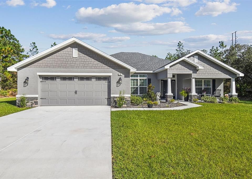 Welcome home to this modern and bright home in tranquil Homosassa. This home boasts an open, split floor plan, with 4 bedrooms and 3 full bathrooms. As you enter, you are greeted with the openness of the great room and dining room, with a view straight through to the back yard. The kitchen and dinette space flow nicely into the living room as well, allowing for easy entertaining or simply the ability to have conversation while one is in the kitchen and the other relaxing in the great room. The kitchen is very spacious, with plenty of cabinet space and a pantry too. Off to one side of the home, you have a large sized office/flex space in the front, which overlooks the front porch, and the primary bedroom on the backside of the home, which has a private door that leads you to the back porch. The primary bedroom has a beautiful tray ceiling and recessed lighting and plenty of natural light. The primary bedroom has two separate walk-in closets. The large primary ensuite bathroom has a stand alone shower, garden tub, private toilet room and two separate vanities. On the other side of the home are the other 3 bedrooms and 2 full bathrooms. The layout of this side of the home is wonderful, as it allows for one of the bedrooms to be private and secluded from the other 2 remaining bedrooms, along with a full bathroom just beside it, allowing it to be private if needed. The other 2 remaining bedrooms share a full size hallway bathroom that features a double vanity and a linen closet. Additionally, there is second linen closet in the hallway, helping to maximize storage within the home. The laundry room leads into the garage, which is a comfortably sized 2 car garage. The back porch is generous in size and is accessible through the great room, primary bedroom and the hallway bathroom, making it easy to transition into a pool bathroom, if a pool ever is added. Each of the doors leading to the back porch have built-in blinds. The home is a 2025 build, with new appliances, smoke detectors, and rainbird irrigation system. Conveniences of Publix and Walmart are nearby, making daily life easy. Enjoy the comfort of a new build on a large lot, with the peace and quiet of Homosassa or venture out to the nearby, beautiful natural springs parks and Weeki Wachee. Florida living at its best!