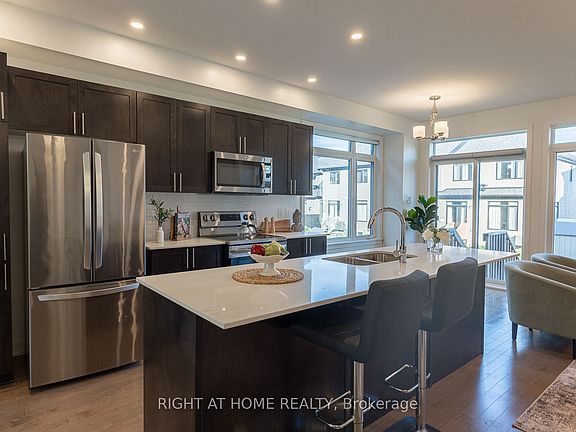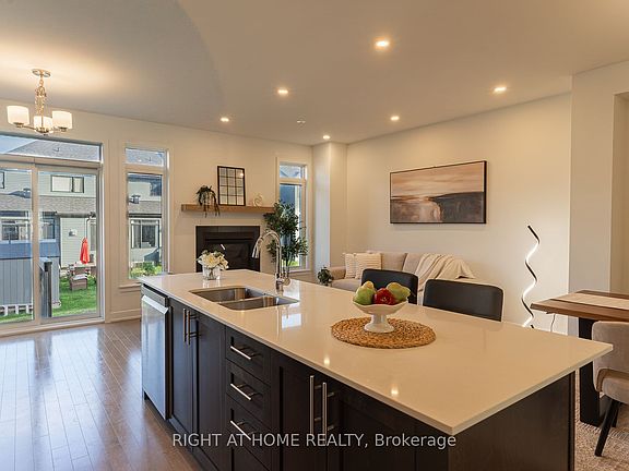 Wow! Stunning, END-UNIT townhome that perfectly blends modern design and luxury living. With its open-concept layout, this home invites you in with an inviting foyer that flows seamlessly into the expansive living area, bathed in natural light and featuring a cozy gas fireplace. Perfect for both relaxing and entertaining. The spacious dining room and bright breakfast area are alongside a contemporary kitchen that truly anchors the main floor. Tailored for the culinary enthusiast, the kitchen boasts ample cabinet space, a pantry, soft-close cabinetry, stylish pot lights, and a large island complete with a breakfast bar, ideal for casual dining or morning coffee. As you ascend to the second level, you'll be greeted by a sizable primary bedroom, which includes a luxurious walk-in closet, Extra Linen Closet and a private ensuite bathroom. Two additional generously sized bedrooms and a well-appointed main bath provide comfort and convenience for family and guests alike. The basement offers a bright and airy recreational or family room, providing a versatile space for relaxation or play, alongside plenty of storage options. Highlighted features throughout the home include elegant hardwood floors and 9-foot ceilings on the main level, quartz countertops, and modern finishes/features that enhance its contemporary appeal. Outdoor living is made enjoyable with a natural gas BBQ hookup in the backyard, perfect for summer gatherings. Enjoy the convenience of a dedicated 2-car parking driveway, separated from neighbors on both sides + 1 Garage parking! No more worrying about dings or damage to your vehicles! This exceptional townhome is situated in a prime location close to parks, natural trails, shopping, public transit, and schools. Don't miss your opportunity to own this beautiful End Unit Townhome in Findlay Creek. Schedule your showing today!