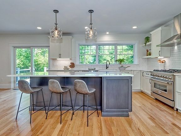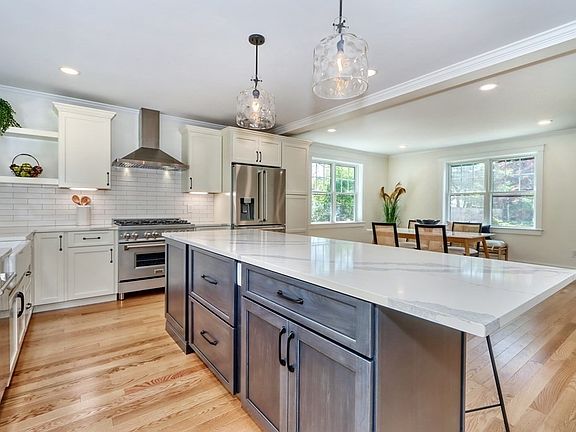 - Features: Flooring - Hardwood, Dining Area, Countertops - Stone/Granite/Solid, Kitchen Island, Deck - Exterior, Exterior Access, Open Floorplan, Recessed Lighting, Slider, Stainless Steel Appliances, Gas Stove, Lighting - Overhead, Crown Molding