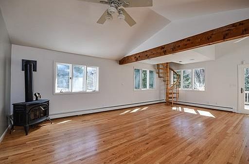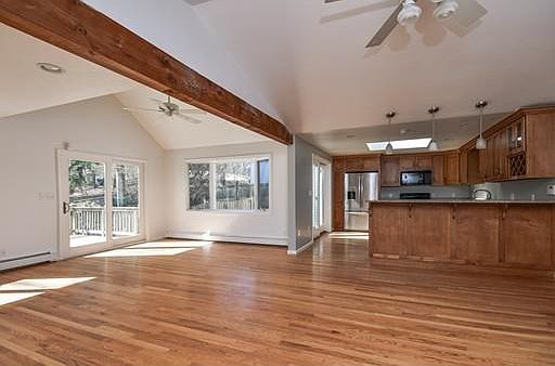 Exceptional opportunity to move to a superb neighborhood conveniently located, close to the Wellesley line. This is a fabulous home w/lots of space that offers a very flexible floor plan, perfect for a variety of lifestyles. Updated kitchen with butcher block island & granite counters, opens to huge sun filled great room. There is a wood stove, large dining area & staircase to loft/office space. The fireplaced living room leads to a spacious bedroom wing which includes a small den, updated full bath, master bedroom with cathedral ceiling & one other bedroom. The second level has 2 more bedrooms & half bath which can be enlarged to a full bath. Another second floor bonus space with separate staircase offers a great area for au pair, artist studio or playroom. This home is gleaming throughout with hardwood floors, freshly painted interior, solar panels for energy savings & lots of light. Great curb appeal with charming front porch & fenced grounds perfect for pets, gardening & play!!