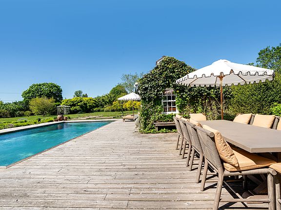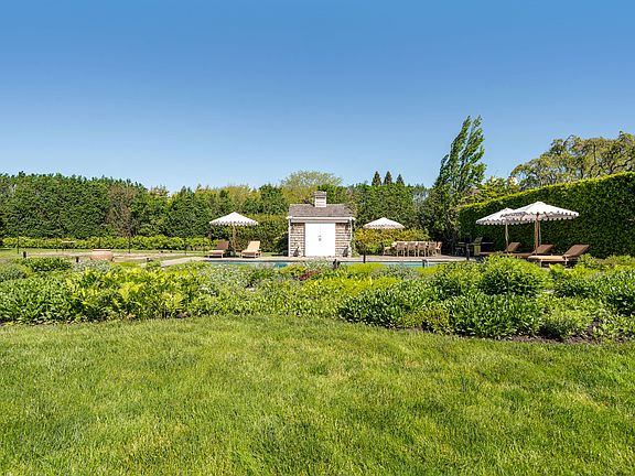 Ninety newly planted 24-foot Arborvitae trees surround the property, providing ultimate privacy. All the bathrooms have undergone a thorough renovation, and the fully renovated deVol kitchen features a la Cornue stove, a Sub-Zero French Door refrigerator/freezer, and other high end appliances. A historic potato barn originally owned and designed by Oliver Stone, later owned and improved with exquisite touches by Drew Barrymore, this truly epic summer retreat combines rustic elegance with modern luxury. The exposed wood beams and open floor plan add to its timeless appeal, while the magical landscape outside surround mature plantings, a wild flower garden, an orchard, a Bocce court, heated Gunite pool, and chic pool house. The interior is ideal for a summer Hampton's living with multiple living areas, an office, 8 bedrooms, a separate guest studio, and lower level gym with Peloton bike and Peloton Tread. Whether for quiet relaxation or entertaining, this property is the ideal Sagaponack summer retreat with Sagaponack's idyllic farmstands and world famous white sandy beaches a short distance away.