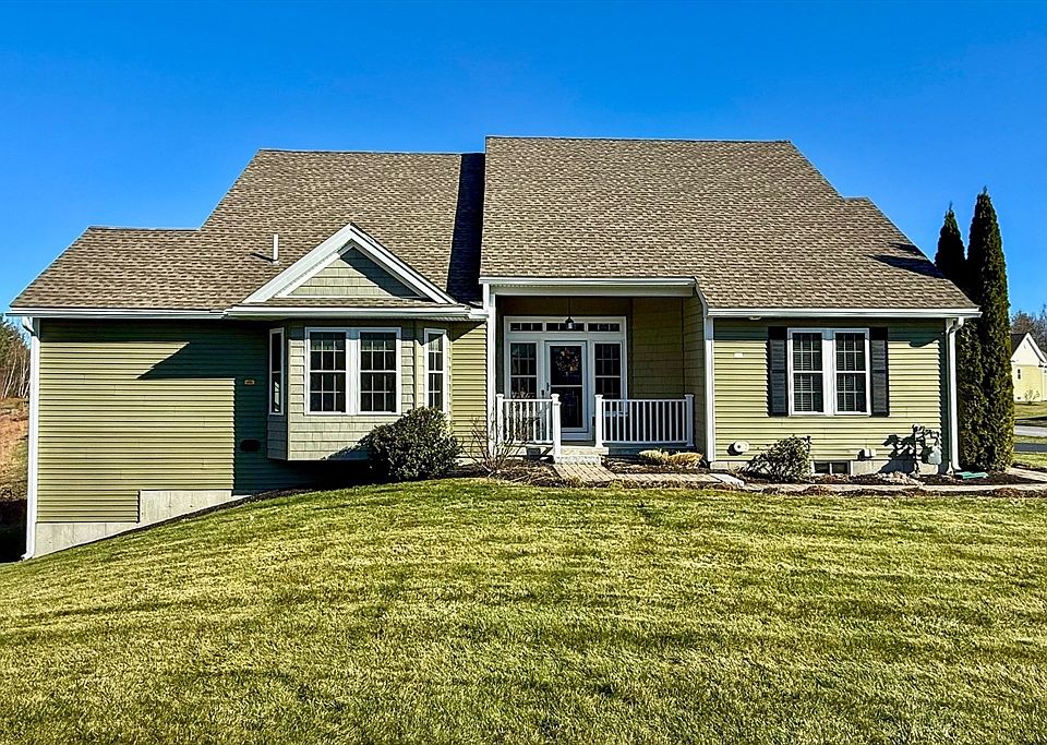 Very desirable “Village at Old Mill” 55+, resident-managed community of 68 homes offering free-standing, single-level living on your own lot. HOA $250/month includes landscaping, snow, and trash removal. Rarely available Lancaster-style home features a welcoming side porch entry and a thoughtfully designed floor plan with a private guest wing—bedroom, full bath, and office with French glass door. Dining and living areas with soaring ceilings, abundant natural light, gas fireplace, hardwood flooring. The kitchen offers granite counters, quality wood cabinets, stainless appliances, wood flooring, and a large island with access to a deck and backyard natural privacy. Primary suite includes a coffered ceiling, walk-in closet, and spa-like bath with double sinks, granite, soaking tub, and shower. Walk-out basement with high ceilings and slider offers potential for 1800± sq. ft. of finishing. Two-car garage, laundry room, new HVAC, irrigation. Near Rtes. 2A/2/140, MBTA, and town amenities.