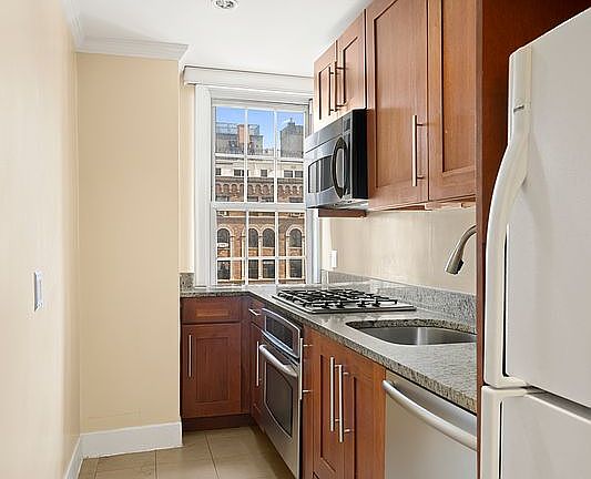 Welcome to this oversized prewar one-bedroom, a home that perfectly blends timeless character with modern updates. High beamed ceilings, expansive windows, and excellent proportions create a sense of openness and light, while city views frame the living space with classic New York charm.