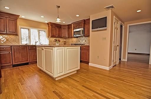 This Colonial Home has been lovingly maintained by the original owners and is located in a great neighborhood on a corner lot. The home has a versatile floor plan with a large front to back living room with beamed ceiling, formal dining room, fireplaced den and a totally remodeled kitchen. The kitchen was totally updated and expanded and is a chef’s dream complete with high end cabinetry, granite counters, stainless appliances, professional series gas stove, huge island, tile backsplash and much more. The first floor has a full bath is remodeled in 2023 with a new vanity, shower and tile wall & flooring. The second floor offers 4 spacious bedrooms and a renovated full bath in 2021 with his and her sink, new bath tub/shower and tile flooring. The home has beautiful hardwood flooring throughout with tile baths. One Car Garage, Central Air, economical Gas heat, fresh paint and a full unfinished basement for possible expansion. This is a great home for entertaining and centrally located with easy access to commuter routes, schools, walking trails and town. New roof in 2016, new windows in 2018, new vinyl siding in 2019, added insulation & new garage door in 2020, new water heater in 2021.