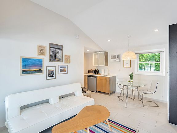 However, it gives an accurate representation of the furnishings & decor. Accurate photography of each unit will be uploaded shortly.This charming 1-bedroom, 1-bathroom cottage-style suite at The Drake Inn offers a peaceful retreat in the heart of Hampton Bays. Nestled on a beautiful waterfront property, the suite is ideally located just minutes from the area's stunning beaches, popular restaurants, quaint shops, art galleries, and local attractions. Many of these beloved spots are within walking distance or a short bike ride away, making it easy for guests to fully immerse themselves in the relaxed coastal lifestyle.Inside, the suite is thoughtfully designed with comfort and convenience in mind. The private bedroom features a queen bed, plush bedding and soft linens to ensure a restful night's sleep. The cozy living room offers a comfortable sofa, flat-screen TV with cable, and a welcoming space to unwind after a day spent exploring the Hamptons. A sunny dining area provides the perfect place for casual meals or morning coffee, while the well-equipped kitchenette includes a Keurig coffee maker with complimentary coffee, cream, and sugar, along with a microwave, mini fridge, dishes, and utensils.Guests can step outside to their outdoor patio, an ideal spot to enjoy a glass of wine at sunset or simply relax in the fresh coastal air. The suite is fully stocked with everything needed for a stress-free stay, including air conditioning, free WiFi, a hair dryer, fresh towels, toiletries, and all the essentials.During their stay, guests have full access to all resort amenities at The Drake Inn. They can take a dip in the outdoor pool, enjoy the beautifully landscaped grounds, or make use of the picnic tables and BBQ grills for a laid-back afternoon. Complementary parking is available on-site, and the property offers convenient extras such as bikes and beach chairs for rent, and access to the property's private marina with dock space available for rent.Located just a stone's throw from local favorites like Cowfish and Rumba, as well as nearby farm stands, parks, and beaches such as Ponquogue Beach and Munn's Pond Preserve, the suite offers the perfect base for exploring all that Hampton Bays has to offer. Visitors can spend the day touring North Fork wineries, browsing local art galleries, or simply soaking in the tranquil waterfront atmosphere.Whether planning a romantic getaway, a solo retreat, or a relaxing vacation by the sea, this cottage suite at The Drake Inn invites guests to slow down, breathe in the salt air, and enjoy the simple pleasures of life in the Hamptons.