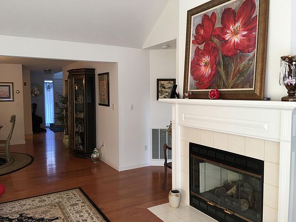 This lovely unit affords one-floor living with professionally finished lower level convenient with sliders to a private yard area. Beautifully updated with new floors, new kit cabs, new large appliances including new gas stove, new counter tops, new central vac, and gas log in living room. East/west exposure with auto awning off the west facing living room offering view of the 5th pond enhanced fairway. The large deck off the living room has a gas grill attached to the home's natural gas and it will stay. The lower level has new carpet, 2 finished rooms, a full bath with its own heat elect thermos to take away chill, a walk-in cedar closet, work area and plenty of storage. 2-car garage enters eat-in country kitchen. Most furniture can be negotiated. Sq Ft does not include lower level.