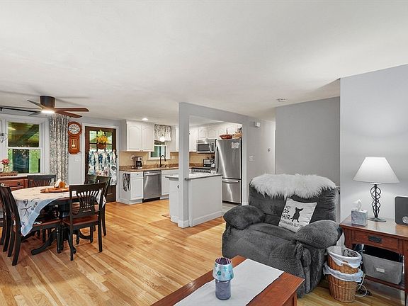 Located just 1 mile from the tranquil shores of Sandy Pond Beach, this inviting 3 bed, 1.5 bath home offers the perfect blend of comfort and convenience. The living room, with its large picture window and cozy fireplace, sets the stage for warm gatherings, while the rich HW floors seamlessly connect the dining room and kitchen, creating an open and welcoming space. The kitchen boasts SS appliances, an island, and easy access to the enclosed screen porch. The porch features a wood stove, exposed wood beams, and access to the spacious backyard, which is perfect for year-round enjoyment. All 3 bedrooms are located on the first level, each equipped with ceiling fans and a shared full bath. The finished basement expands your living options with space for an office, family room, or fitness center, complete with a convenient half bath. 1 car garage too! The fenced in backyard with patio offers ample space for outdoor activities and relaxation. Don’t miss this gem!