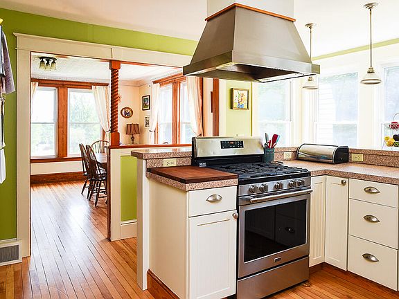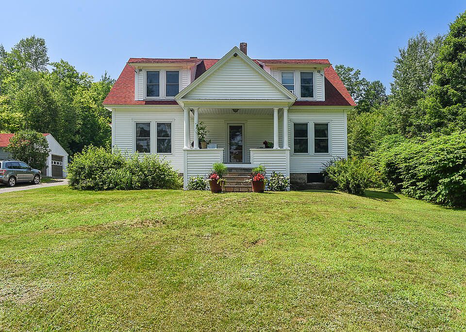 This spacious bungalow sits on over 5 private acres on a paved dead end town road. This 3 bedroom, 2 bath home has been well taken care of both cosmetically and constructively. You will not be disappointed with over 1900 square foot living space, beautiful tin ceilings, large primary bedroom with walk in closet, relaxing front and back decks, home office, full basement, two car garage and beautiful large yard.