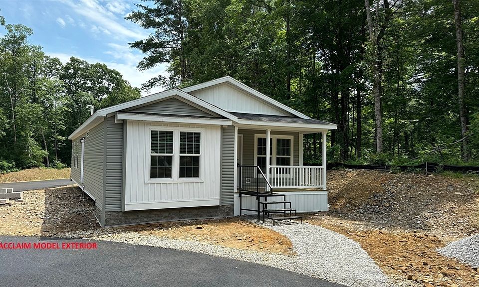 Evoke Model w/2 car garage. Located just off of Fiske Hill, surrounded by conservation land, these homes feature one floor living with 2 bedrooms, 2 baths, & a den. Standard features include a stainless steel farmhouse kitchen sink, stainless steel appliances, tray ceiling & entertainment center in the living room (per plan), a 10’x12’ brushed concrete patio, central A/C, covered front porch & more. All homes come with a 7 year warranty. One car & two car attached garages can be added to most lots. Blueberry Hill Estates is a land leased community. One monthly fee will cover sewer & water charges, real estate taxes, rubbish, snow plowing, sanding, & maintenance of the roadways, all landscaping maintenance, cable TV, & high speed internet. A community center with outdoor space will be built as part of Phase 3.