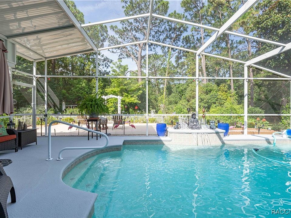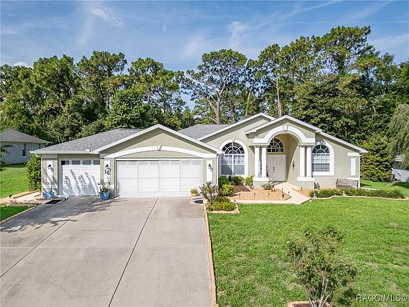 A true gem in Cypress Village, custom built by Van Orden Homes and nestled in the heart of Sugarmill Woods. Stunning from the moment you step through the DOUBLE DOOR entry. Featuring a NEW ROOF, installed in 2023 with all new gutters surrounding the home, a 4-ton TRANE HVAC system with UV LIGHT for moisture control added in 2021, and new luxury VINYL PLANK FLOORING, this residence is beautifully updated and move-in ready. The spacious THREE-CAR GARAGE is under CENTRAL A/C and heating, complete with tiled floors and INSULATED DOORS, excellent space for a workshop, or climate-controlled storage. The home is also equipped with a central vacuum system throughout, excluding the kitchen. The GOURMET KITCHEN is a chef’s dream, recently renovated with contemporary shaker cabinets, upscale granite countertops, a wet breakfast bar, a granite-topped desk area, a new osmosis water filtration system, and abundant storage space. The primary ensuite offers dual sinks, a new toilet, and a jetted tub, while both the primary and guest bedrooms feature new ceiling fans. The outdoor living space is equally impressive, the pool features a serene waterfall cascade. The tiled lanai has a new metal roof and ceiling fan, while the lanai, pool deck, and patio have all been freshly painted. The pool area includes a shower with hot and cold water, plus a convenient storage closet with shelving for all your pool accessories. Step into the backyard sanctuary which leads to a fenced, tiled patio bordered with edgers and framed by a garden. Surrounded by eight clusters of fragrant Confederate Jasmine and a protected greenbelt, this peaceful retreat is great for meditation, yoga, or simply enjoying nature and wildlife. Additional features include a well pump for irrigation, keeping the landscape vibrant year-round. This prime location is just two miles from Publix, with easy access to Homosassa Springs and the Suncoast Parkway, making the commute to Tampa effortless. Optional membership to the Sugarmill Woods Country Club is available. Don’t miss the opportunity to tour this exceptional home—schedule your showing today!