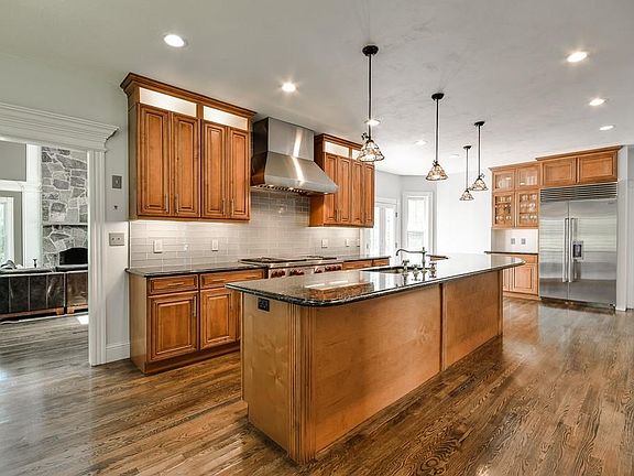 The BEST OF ALL WORLDS! This delightful home is located on a beautifully landscaped 2.78 acre lot in a quiet neighborhood cul-de-sac, yet is minutes to town center, schools, MBTA train, & major routes. Gorgeous hardwood throughout entire first & second floors. Large sun-filled eat-in kitchen with HUGE center island, Professional gas range, NEW granite counters, and stainless appliances. Great Room w/ fieldstone floor-to-ceiling fireplace & sliders to deck and back yard. Gracious two-story foyer open to formal dining room with wainscoting and French doors to living room. Terrific mudroom w/ built-in bench. Huge master bedroom w/ two walk-in closets, and updated master bath. Three additional large bedrooms and updated main bath complete the second floor. Walk out lower level is finished and offers approx 1300 sq ft for fireplaced family room (plumbed for wet bar), home office, exercise room & full bath. Sliders to two tier patio, deck, & private level back yard with inground pool.