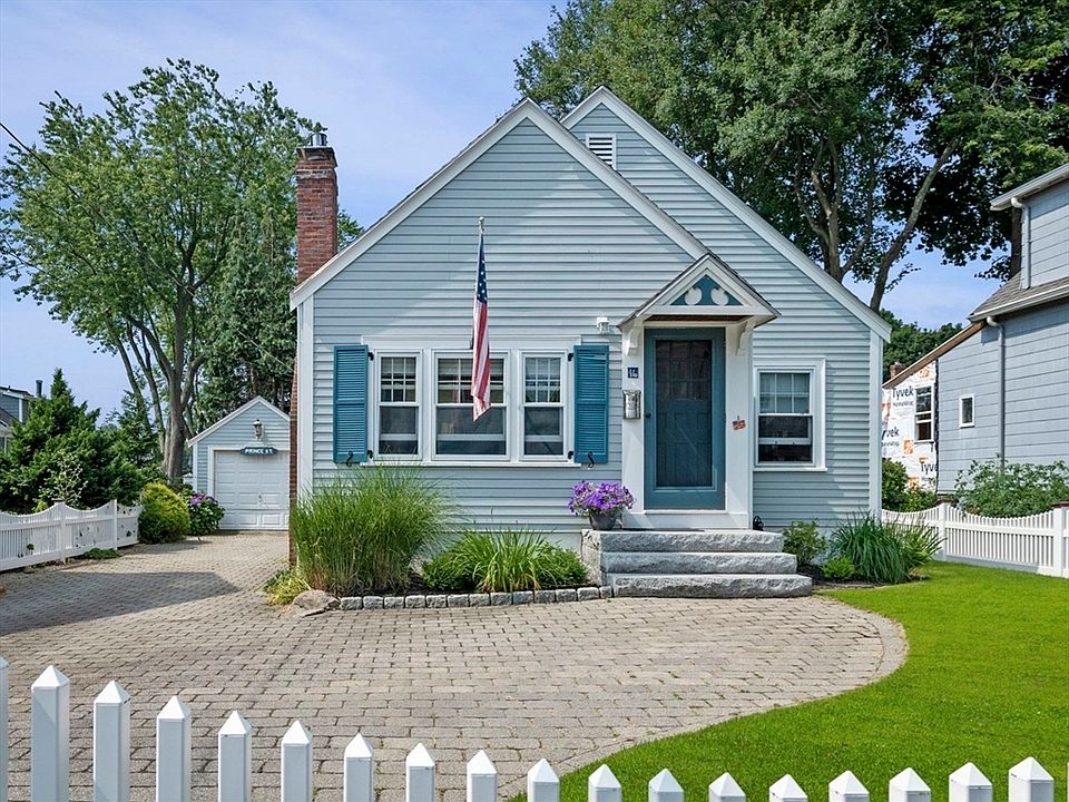 Discover this charming home in a tranquil neighborhood, centrally located near downtown, Devereux Beach, Abbott Public Library, schools, and more. Recently updated with full insulation, Harvey siding, and PVC trim, this home offers low maintenance and effortless living. The curb appeal is unmatched with durable driveway pavers and pea stone flower beds adding to the serene atmosphere. The fenced-in lot features a detached one-car garage, rear deck and yard offering a private oasis in town. Ideal for small families, first-time buyers, or downsizers, this home exudes warmth and comfort. The living room, centered around a charming gas fireplace, flows into the kitchen with dining area and French doors lead to a delightful rear deck. The inviting one-level residence boasts 2 cozy bedrooms and a full bath on the main level. Additional highlights include a 750 sq ft unfinished attic and a 530 sq ft unfinished basement, providing ample storage or potential for future expansion.