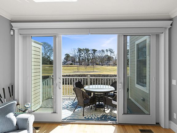 Nestled within the coveted and gated Residences at South Cape Beach, this exquisite end unit condo offers a rare opportunity for luxurious and low maintenance coastal living overlooking the golf course. Boasting a gourmet kitchen with an island and a see-thru gas fireplace to the great room, this home exudes an air of sophistication and elegance. Hardwood flooring, crown moldings, and carefully selected lighting fixtures accentuate the impeccable attention to detail throughout. The first-floor primary en suite impresses with cathedral ceilings and a walk-in closet, while the second floor living area features a stunning uplit trayed ceiling, seating area, and an additional primary bedroom en suite. The walk-out lower level unveils a 7-seat media room, perfect for entertaining, along with a family room or guest space. With only 24 units in this pet-friendly complex, the property offers an exclusive and intimate setting for discerning residents. Enjoy the convenience of strolling to South Cape Beaches and exploring the vibrant offerings of Mashpee Commons and Popponesset Market Place.