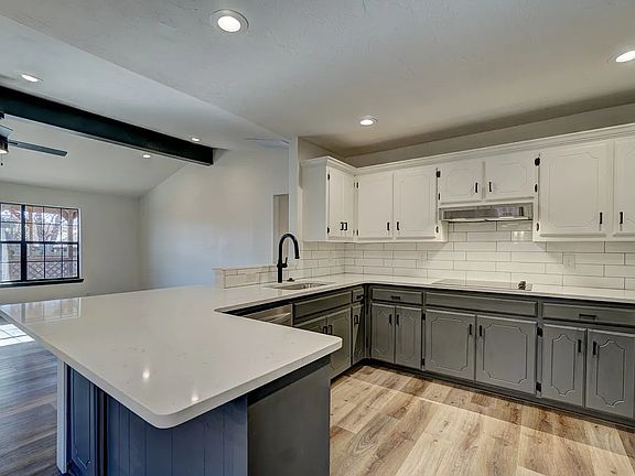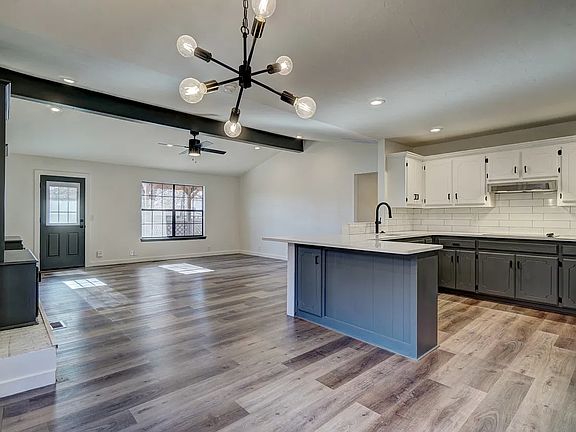 This 4 bed 2 bath home in Edmond schools is a great place to call home. With all new everything, including quartz countertops, faux wood floors(including the master), walk in shower for the master, large bedrooms, and vaulted ceiling in the living room, this is the perfect house giving you lots of space for work/school or anything else.