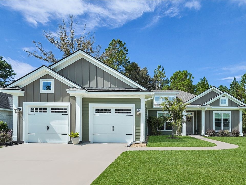 Motivated Seller is offering $5,000.00 towards the Buyer's Closing Cost! Such a lovely property, situated within the desirable gated community of Clearwater; ideally located to enjoy all that the Golden Isles has to offer. Built in 2022 this home has been impeccably maintained. The charm starts with a meticulously manicured lawn, handsome Board & Batten siding, and inviting covered Portico that ushers you into the Foyer. The interior design is characterized by an impressive Open Floor Plan that flows with luxury Vinyl Plank throughout the common areas. To the left of the Foyer is a beautiful flex room adorned with Wainscoting, Crown Molding, and Chandelier. The large Living Room centers around the cozy, Quartz Surround Gas Fireplace that is flanked by floating shelves. The Kitchen impresses with Quartz Countertops, Subway Tile Backsplash, Stainless Steel Appliances, kitchen Island with extra storage, ample Cabinetry, and Pantry. The Homeowner’s have also customized a fantastic Coffee/Wet Bar Cabinet and floating shelf. A spacious Dining Room overlooks the beautiful outdoor space. The Owner's Bedroom has a nicely finished Tray Ceiling and large Walk-in Closet. The En-suite Bath features: large Tiled Shower, Double Vanity, Tiled Flooring, and Linen Closet. This exceptional split floor plan offers 2 additional Bedrooms, guest Bathroom, and great Laundry Room. Large Sliding Glass Doors opens the home to a fantastic Covered Patio and Wooded Backyard yard. Ample parking is provided via an oversized two-car Garage and double Driveway. Community Amenities include gated access, zero entry pool, splash zone, 21-Acre Lake, boat storage, street lights, sidewalks, and more.