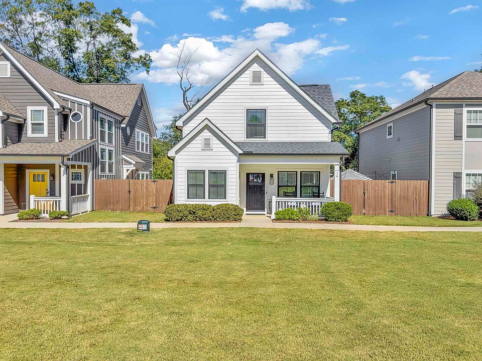 Welcome to Ridgeway Cottages! This stunning Charleston-style home is just five years young and has been meticulously maintained. From the moment you step onto the welcoming front porch, you'll feel the charm and serenity this home offers. Inside, enjoy an open floor plan filled with natural light, gleaming hardwood floors, and elegant moldings. The chef’s kitchen features abundant cabinetry, a spacious walk-in pantry, and plenty of room for entertaining. The main-level primary suite includes a large walk-in closet and a spa-like bathroom with dual vanities and a beautifully tiled walk-in shower. Upstairs, you'll find two oversized guest bedrooms, a cozy den, and a full bathroom—perfect for guests or a home office setup. Step outside to a fenced-in backyard with a patio, ideal for cookouts or relaxing evenings. Located in Midtown Greenville, this home is just 5 minutes from downtown, 3 minutes to the Swamp Rabbit Trail, and within walking distance to Kitchen Sync, White Duck Taco, and other popular eateries and breweries. Homes in Ridgeway Cottages are rarely available—don’t miss your opportunity to own this gem!