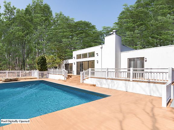 Immaculate and fantastically maintained 3 bedroom, 2 bathroom one-level contemporary on scenic Rivers Road just north of East Hampton village. Featuring an open layout, the living space is flooded with light and showcases high ceilings, a working fireplace and a wall of glass sliders. The bright and clean kitchen tucked off the dining area offers plenty of storage and workspace. The spacious en-suite master features access to it's own outdoor seating area overlooking the pool. The home also provides two guest bedrooms that share a full bathroom, as well as a main level laundry room. The unfinished full walkout lower level offers excellent expansion potential. Outside, the 20x40 heated pool is surrounded by an expansive deck that provides ideal space for lounging by the pool and al fresco entertaining. Lying adjacent to reserve but just a 5 minute drive to the village, this property offers the best of both worlds in regards to privacy and convenience. An exceptional offering with tremendous potential.