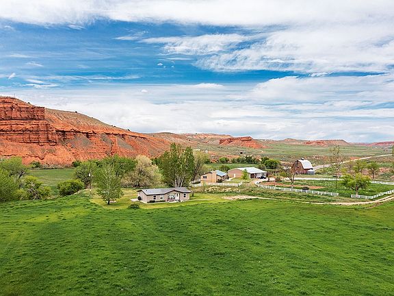 Offering approx. 1 mile of private Nowood River frontage. Excellent fishery & wildlife habitat! The lazy river meanders through the property, highlighting Red Clay Buttes called Signal Cliff. Mature trees, expansive unobstructed mountain views & hay meadows for livestock. 1895 water rights. Immaculate home with numerous upgrades, a guest house, a historic red barn, detached 2 car garage/shop.