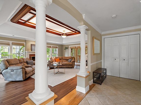Just a stone’s throw from St. John’s Prep, this expanded Colonial offers 3,466+ sq ft of comfort and versatility on over half an acre. The dramatic foyer and family room feature cathedral ceilings, mahogany detail, and one of three fireplaces. French doors open to a 4-season sunroom with mini-split and sliders to a composite deck and hot tub oasis.Main level leads to eat-in kitchen updated counters, formal dining and 2 living rooms, walk-in pantry, and a bedroom. Upstairs 4 bedrooms master offering dual closets one of which is walk in, updated hardwood floors, and 2nd-floor laundry. The finished lower level includes a kitchenette, extra dishwasher,family room with fireplace, bonus living area with exterior access, and a workshop. Updates: improved electric, fresh paint, refinished hardwoods, and more.Oversized detached 2-car garage with an additional workshop and lush yard with fruit trees and chicken coop completes this partially furnished retrt.