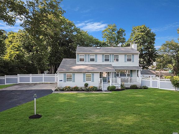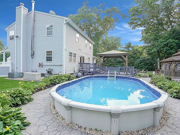 Magnificent newly built Colonial in the Village of Lake Grove located mid-block on the inside of a cul-de-sac. This property is just shy of three-quarters of an acre on a perfect flat lot with an expanded blacktop driveway and a paver path leading you to the beautiful cozy front porch. Entertain your guest in the resort style backyard with semi in ground swimming pool, large deck with gazebo, Additional screened in gazebo with electric, Beautiful paver patio with stamped concrete. This home features an open floor plan, hardwood floors, a spacious kitchen with breakfast bar, lots of cabinet and counter space and black appliances. Enormous master bedroom with vaulted ceilings, spacious closet, additional bedrooms with vaulted ceiling's, full finished basement with outside entrance and full bathroom, possible second kitchen. Central AC, 200 amp electrical panel.
