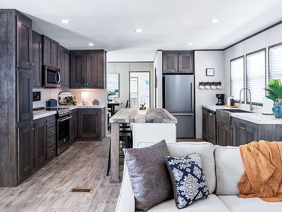 Discover your future home in this thoughtfully designed 3-bedroom, 2-bath Wilson model offering approximately 1,191 square feet of comfortable living space. With its open-plan layout, the living, dining, and kitchen areas flow seamlessly-perfect for everyday life and entertaining alike. A modern kitchen boasts 42" overhead cabinets, hardwood cabinet doors, and a crisp farmhouse sink, with stainless steel appliances available as options. In the master suite, you'll find a double-sink vanity, a generous 72" deck tub with plumbing access, and a 48" fiberglass shower with glass door, along with elongated toilets and brushed nickel fixtures. Energy efficiency and comfort are built into every aspect-insulation levels, low-E thermal pane windows, and a full wrap with vapor barrier help regulate climate year-round. The exterior features include a craftsman style front door with storm door, cottage rear door, vinyl siding, and attractive trim details. This home also includes modern utilities like total electric service, exterior outlets, and a programmable thermostat. Living within this vibrant neighborhood means access to amenities like a community pool, clubhouse, parks, playgrounds, and shaded picnic areas, all while being close to local shopping, dining, and excellent schools. Don't miss the chance to make the Wilson your home!